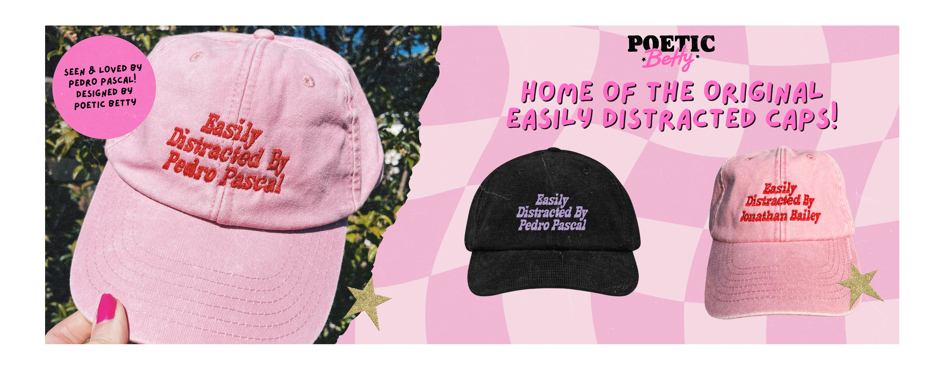 When Pedro met our Easily Distracted by Pedro Pascal Pink Cap!