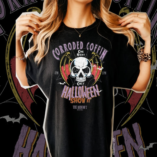 Eddies Corroded Coffin Vintage Halloween Show Inspired Crew Neck Adult Band T-ShirtRegular price From $35.00 USDRegular priceUnit price / per-