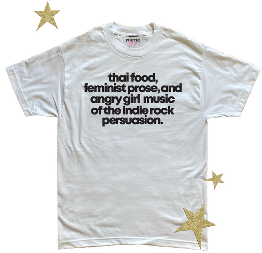 Thai Food, Feminist Prose, Angry Girl Music of the Indie Rock Persuasion 10 Things I Hate About You T-ShirtRegular price From $35.00 USDRegular priceUnit price / per-