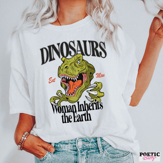 Dinosaurs Eat Man Woman Inherits the Earth Jurassic Feminist T-ShirtRegular price From $34.00 USDRegular priceUnit price / per-