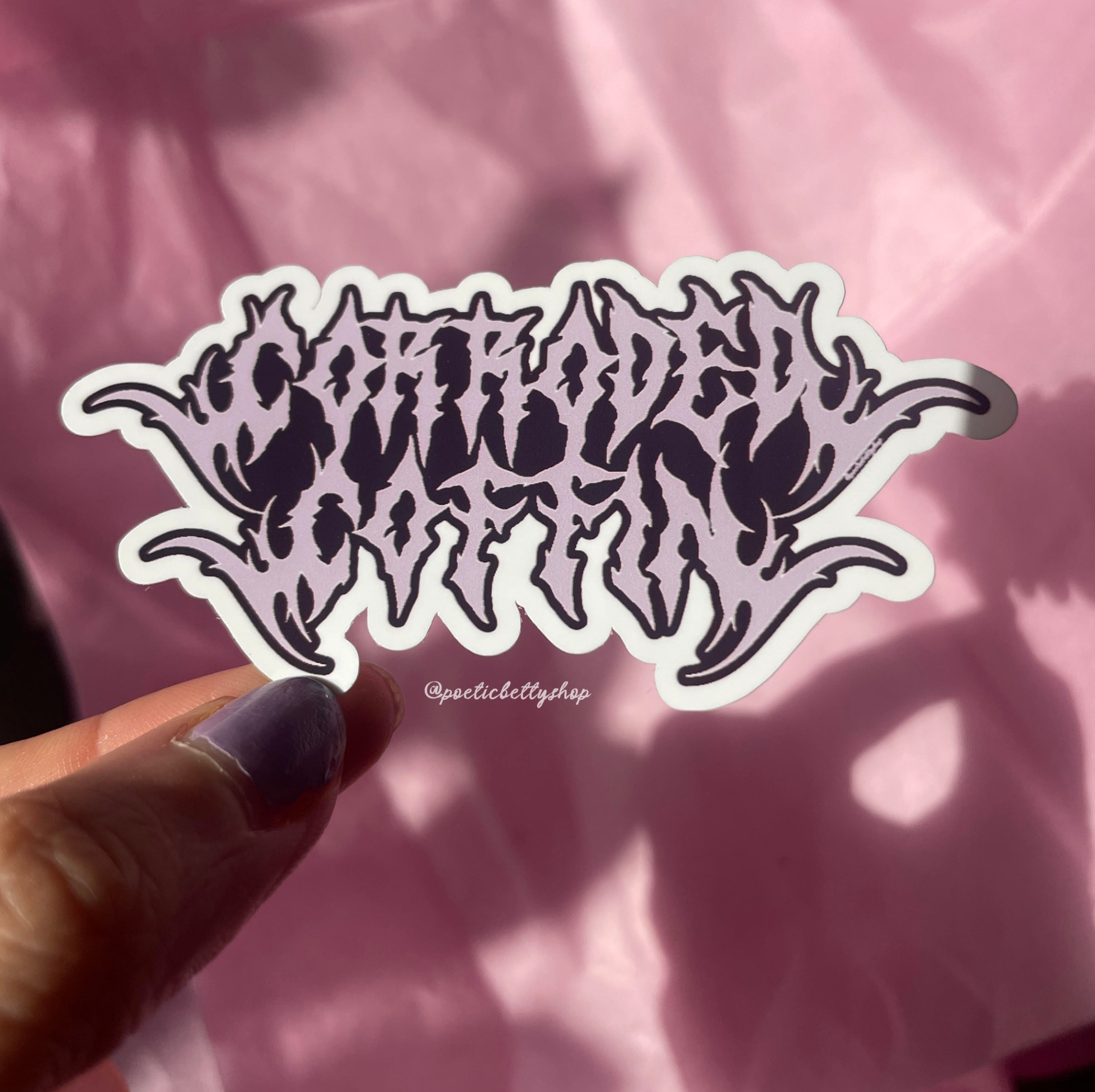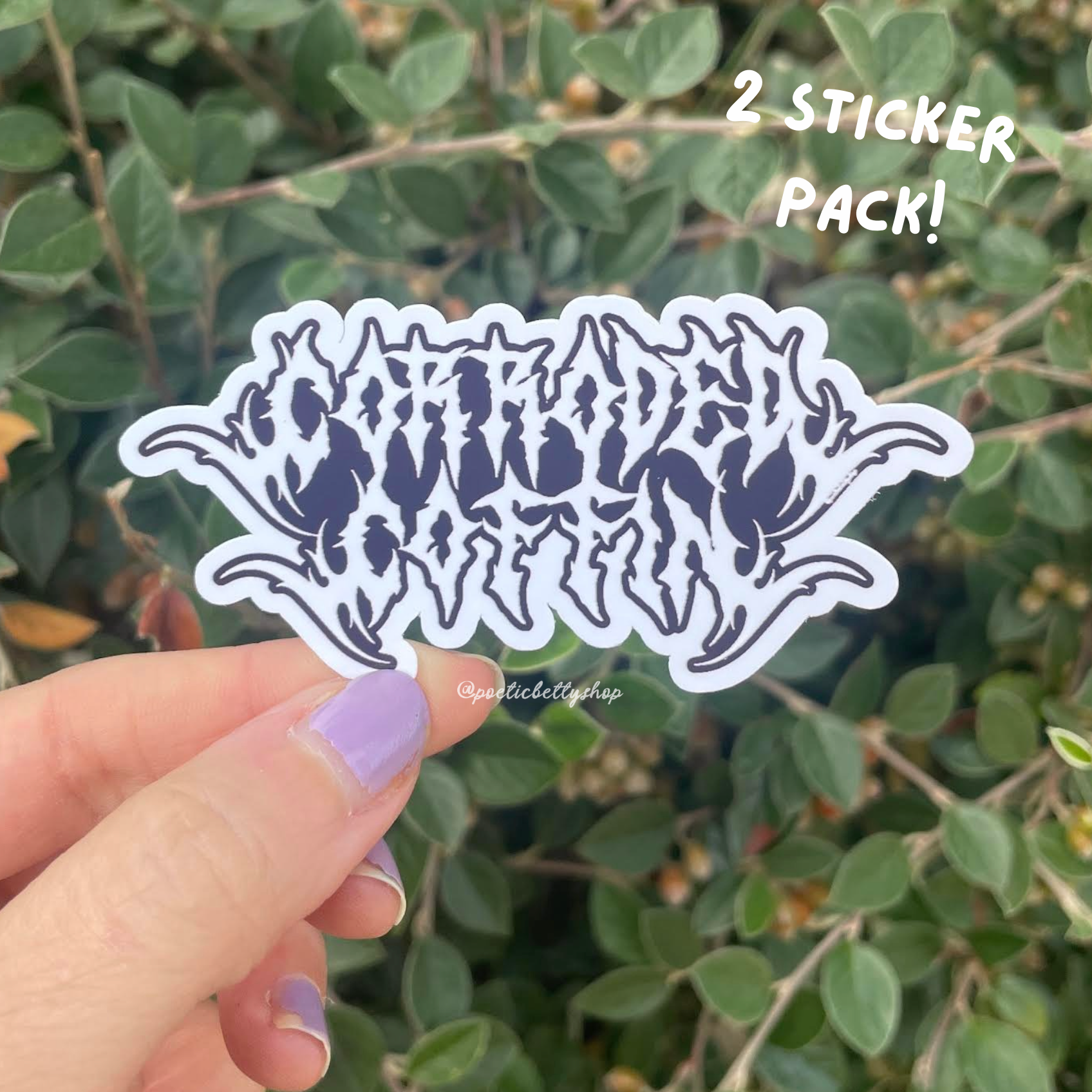 Corroded Coffin Metalcore style lilac and white stickers! See below for full sticker pack contents: