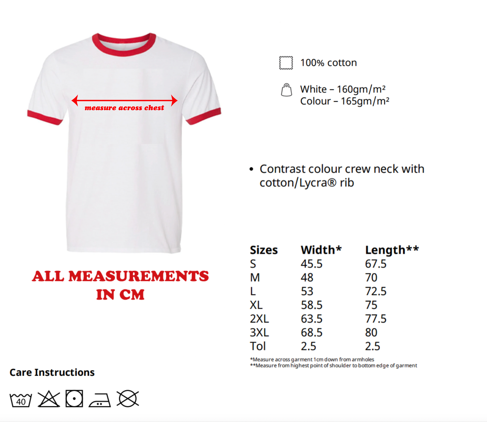 - All other shirts: 100% Cotton