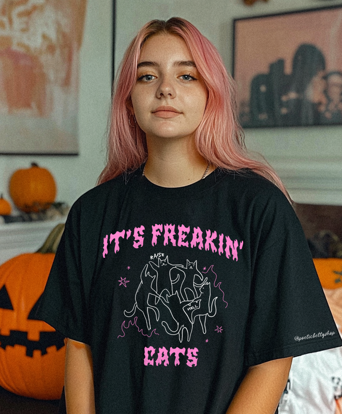 It's Freakin' Cats! Halloween Feline T-Shirt Black Unisex