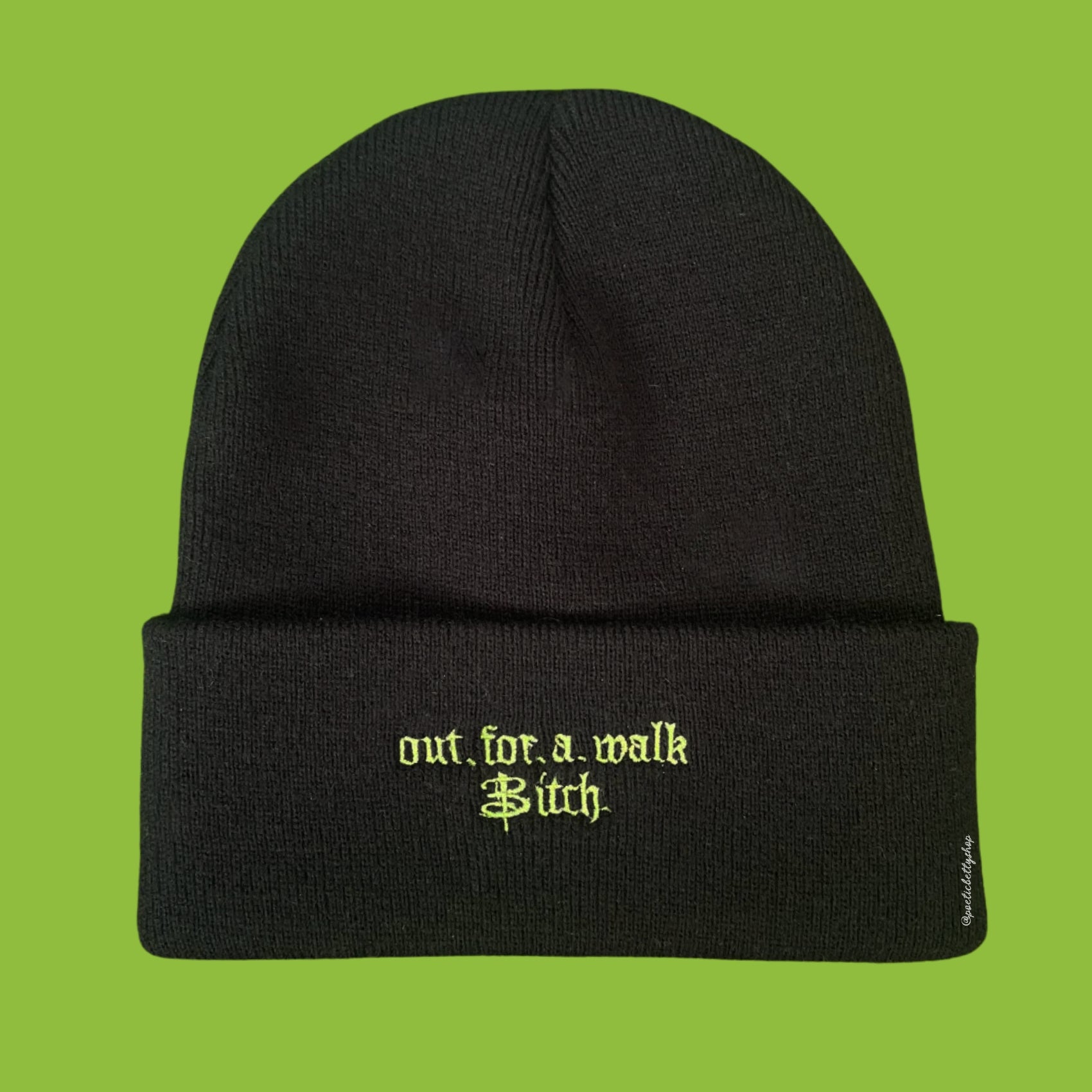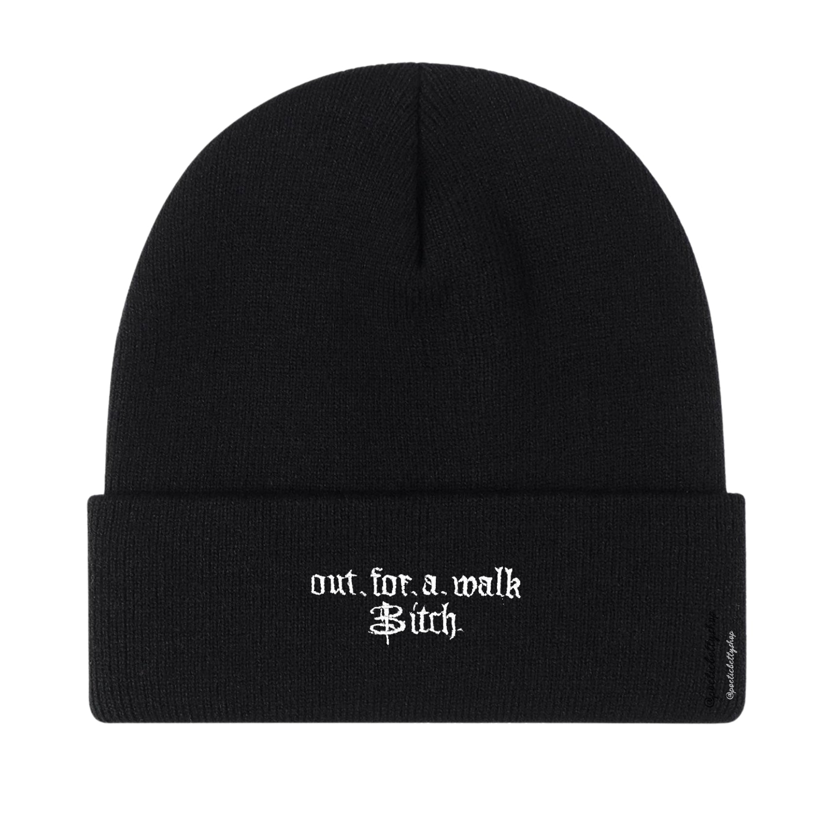 Our bestselling and favourite Out For A Walk design embroidered onto a super soft cuffed beanie hat! Ready for all your walks!
