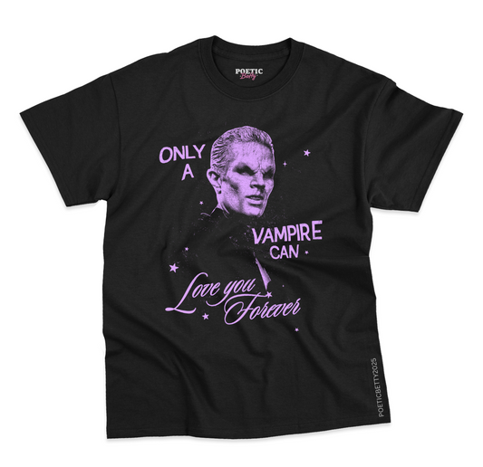 Spiked Only A Vampire Can Love You Forever T-Shirt 100% Cotton Black