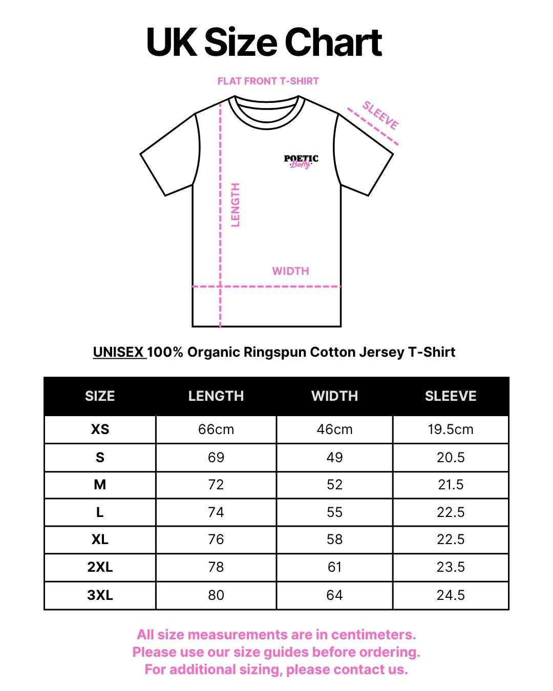 Poetic Betty offers free UK shipping on all t-shirt orders. For the USA, we offer free shipping on all orders over $150.00
