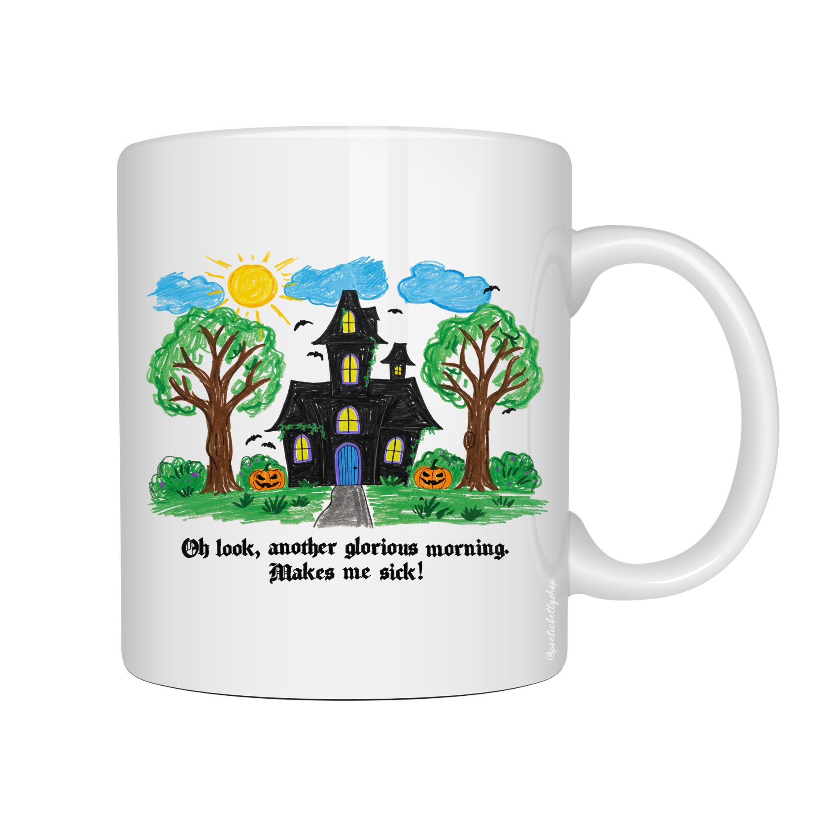 Oh, look, another glorious morning. Makes me sick! What a bunch of hocus pocus. Mug available in White.